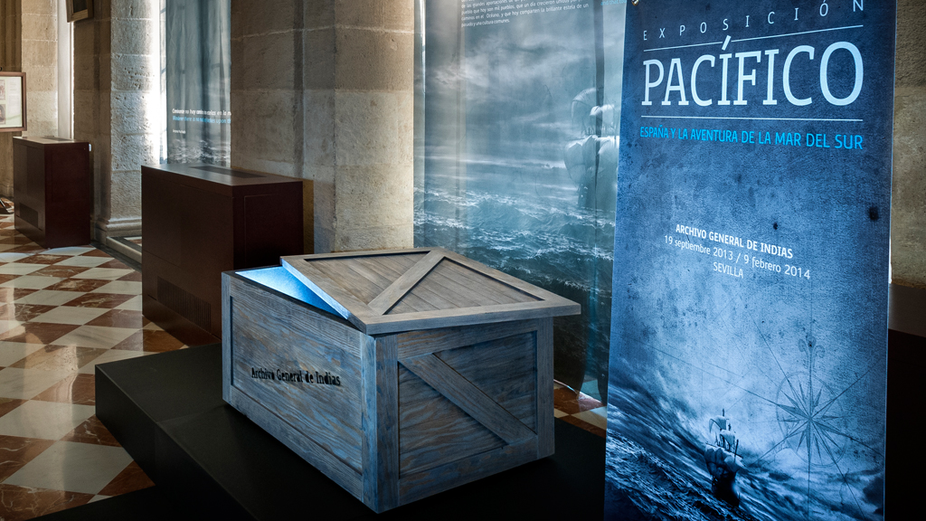 El Archivo General de Indias de Sevilla abre sus puertas para mostrar el patrimonio documental del Pacífico español, para que su contenido sea leído en voz alta como una de las grandes aportaciones de un pueblo a la Historia Universal. Un pueblo que hoy son mil pueblos, que un día crecieron unidos por finos caminos en el Océano, y que hoy comparten la brillante estela de un pasado y una cultura comunes.