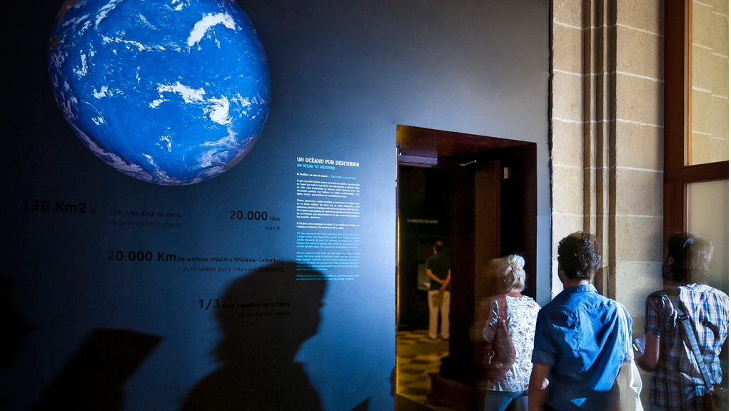 A modo de preámbulo este ámbito está planteado como una declaración de intenciones. En él se explicará como en los archivos españoles, en el trabajo de sus archiveros y en el estudio y las obras de historiadores nacionales e internacionales, se encuentra una historia apasionante que ha permanecido dormida para el público general: la historia del Pacífico español. Así mismo, se realizará una introducción al océano Pacífico como realidad física y etnográfica, dando una idea de sus dimensiones y características geográficas. Posteriormente descubriremos que el mayor océano de la tierra fue durante mucho tiempo un océano desconocido.