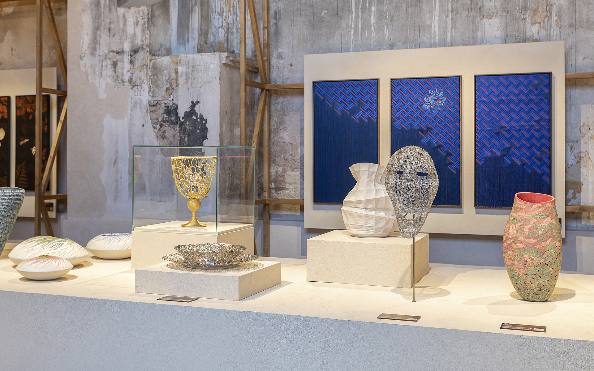 Alfonso Aguilar, lacemaking, Spain | Kamilah Ahmed, embroidery, UK | Giacomo Bevanati, wire sculpting, Spain | Brodeuse Voyageuse, textile sculpting, Morocco | Megan Brown, jewellery making, UK | Francisco Carrera Iglesias, embroidery, Spain | Minyeol Cho, textile sculpting, South Korea | Giovanni Corvaja, goldsmithing, Italy | Bernardita Cossio, porcelain making, Chile | Matéo Crémades, parchment sculpting, France | Lea Mi Engholm, ceramics, Denmark | Carl Fox, woodworking, UK | Shoko Fukuda, textile sculpting, Japan | Ganci Argenterie, silversmithing, Italy | Ferri Garcès, paper art, France | Atelier George and Xavier Montoy, glassblowing and multimedia sculpting, France Joaquín Gilabert López, basketweaving, Spain | Jennifer Hickey, porcelain making, Ireland | Iben Høj, textile sculpting, Denmark | Maison Spindler, wood marquetry, France | Pierre-Yves Morel, decorative painting, Belgium | Valéria Nascimento and Lucas Ferreira, porcelain making, UK | Yukito Nishinaka, glass sculpting, Japan | Martha Pachon Rodriguez, porcelain making, Italy | Jaroslav Prošek, glass sculpting, Czech Republic | Helmi Remes, glass sculpting, Finland | Michael Rice, ceramics, UK | Nati Rodríguez, multimedia sculpting, Spain | Epona Smith, silversmithing, UK | Manuel Solano Rodríguez, gold thread embroidery, Spain | Pablo TITO, ceramics, Spain | Kazuhiro Toyama, metal sculpting, Japan Renze van den Brink, cabinetmaking, Netherlands | Dorothee Wenz, ceramics, Germany | Andrea Zambelli, furniture making, Italy.