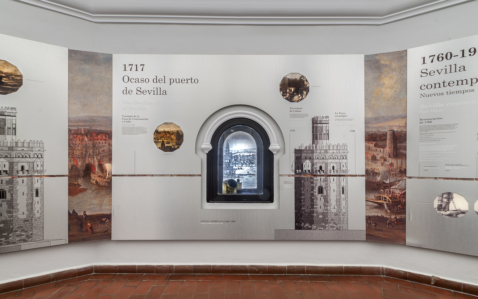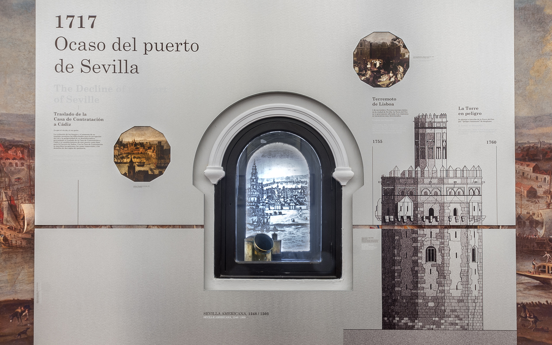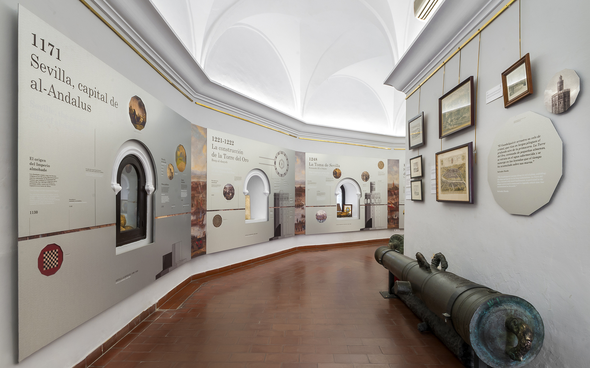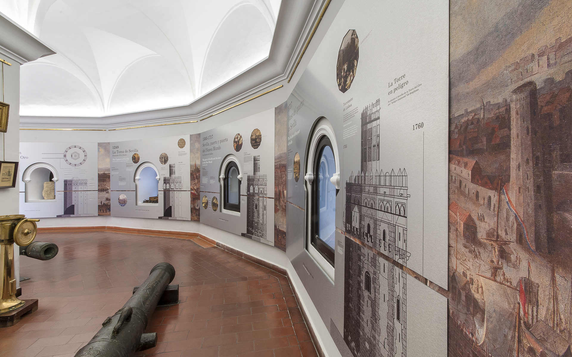 Intervención museográfica para la exposición «Torre del Oro. Testigo del tiempo», con adaptación de contenidos, diseño, producción y montaje de un recorrido dedicado a la historia y significado de este emblemático monumento sevillano.